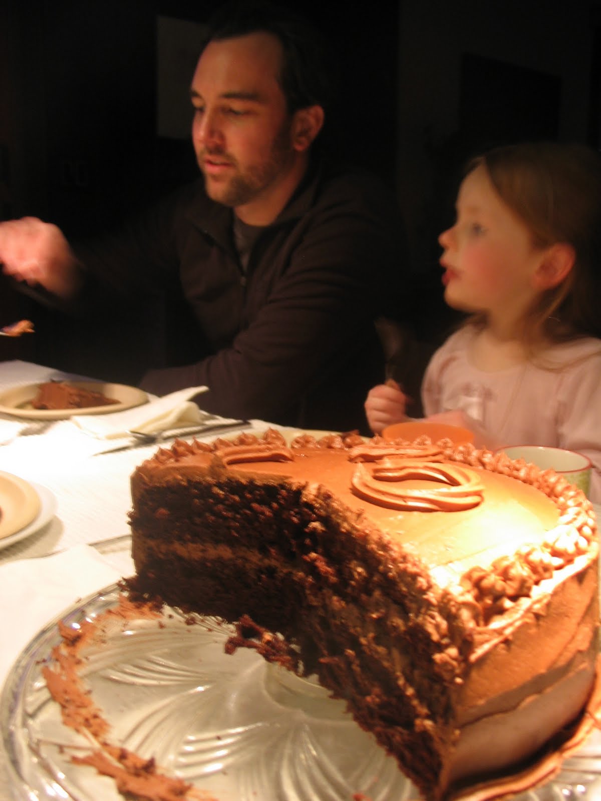 We cut into it too soon and the chocolate oozed out.  The oozing chocolate was so decadent that Music Man actually said "I think this bread is illegal."